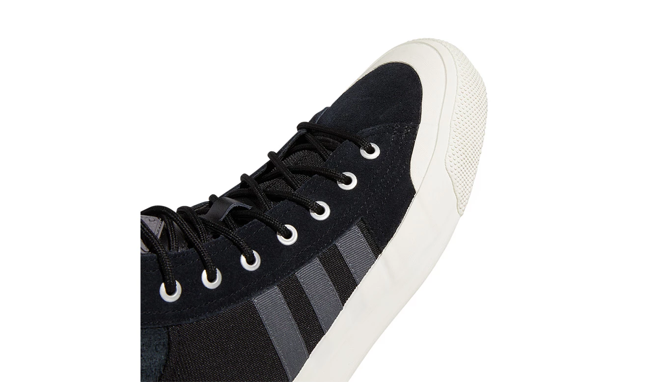The adidas Nizza debuted as a B-ball trainer but soon became a staple on city streets. Now it’s heading to the great outdoors. Borrowing style from vintage outdoor gear, this pair of the iconic shoes gets extra rugged with leather, suede and CORDURA® panels. As you hike the sidewalks, its vulcanised outsole holds up to scuffs and scrapes.